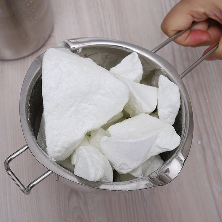 A repceviasz mindkét formáját könnyű feldolgozásra tervezték, jelentős előnyöket kínálva mind ipari, mind barkácsolási környezetben. Az optimális 48°C-os olvadáspontú blokkváltozat gyorsan és egyenletesen olvad szabályozott fűtés mellett (jellemzően kettős kazánon keresztül), speciális berendezések nélkül, csökkentve az energiafogyasztást és a gyártási időt. A pelyhes változat 70 ℃-os olvadáspontjával és vékony szerkezetével gyorsan feloldódik más viaszokkal keverve, így egyenletes eloszlást és az olvadási hőmérséklet pontos beállítását biztosítja. Az olvadt repceviasz – formájától függetlenül – kiváló folyékonyságot mutat, biztosítva a formák vagy tartályok teljes, egyenletes megtöltését, és minimálisra csökkenti az olyan hibákat, mint a buborékok, repedések vagy egyenetlen felületek. Egyenletes sebességgel hűl és megszilárdul, így a kézművesek és a gyártók elegendő időt biztosítanak a viasz beállítására, dekorációk hozzáadására vagy más anyagokkal való keverésre a megkötés előtt. A tömbforma könnyen kezelhető – a vágás vagy reszelés lehetővé teszi az adagolás pontos szabályozását –, míg a pelyhes forma elősegíti a gyors keverést, mindkettő csökkenti az anyagpazarlást. Mindkét változat könnyedén szétszerelhető, megőrizve formájukat és textúráját anélkül, hogy megrepedne vagy a formához tapadna, javítva a gyártás hatékonyságát és csökkentve a termék károsodását.